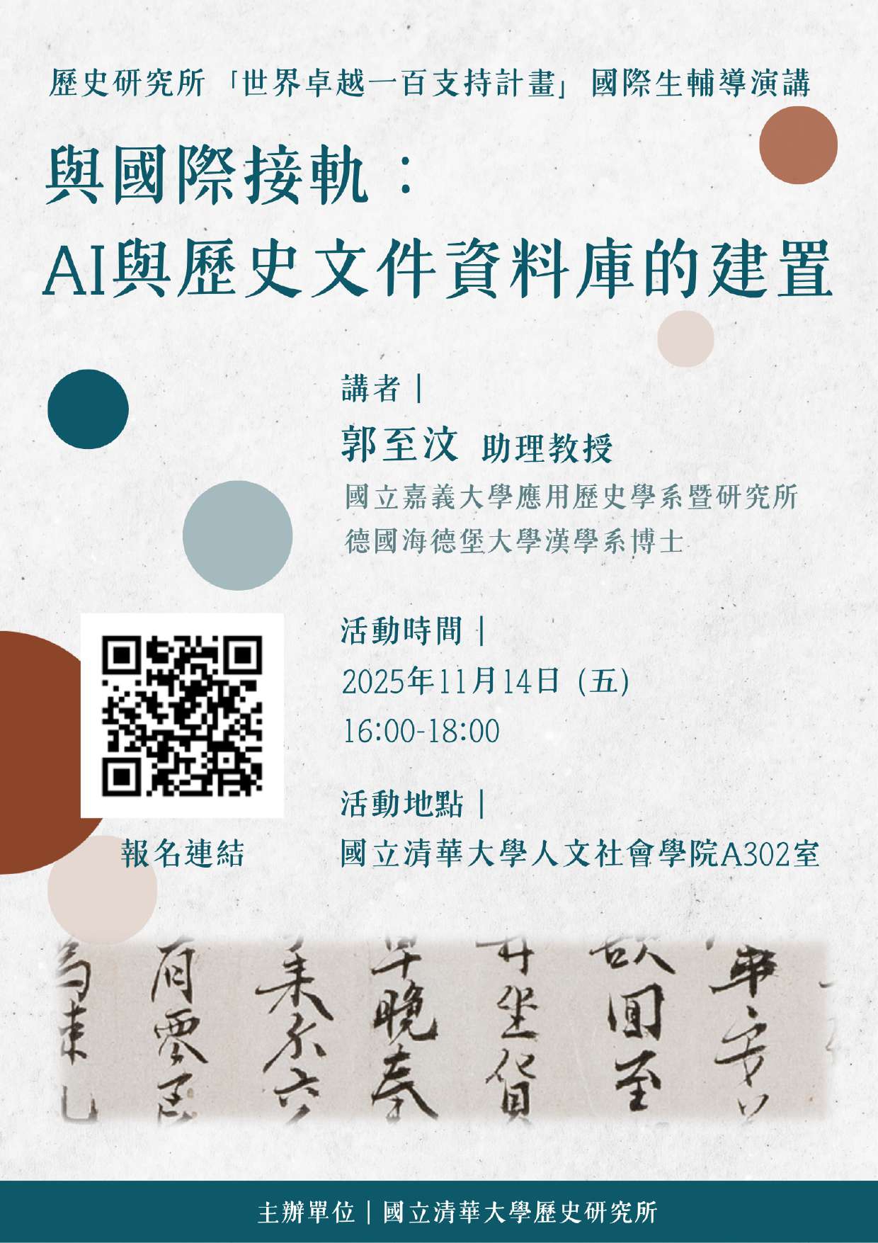 演講題目︰與國際接軌︰AI與歷史文件資料庫的建置